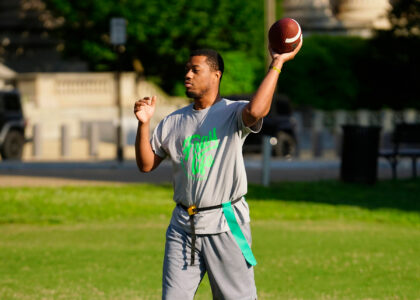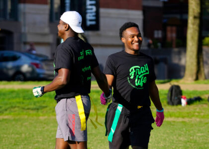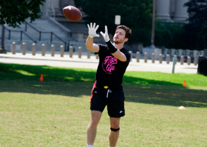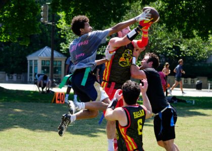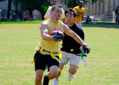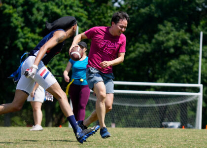 It’s all sunshine, smiles and speed at our National Mall summer flag football league. These athletes gave it their all during our social, mixed-gender meetups. They might be there for the touchdowns, but they stay for the fun. Photos by Scott Fields.