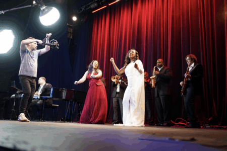 In 2017 she realized that the band had to change to play the venues like MGM, venues she knew the band was meant for, i.e., three-hour non-stop sets, costume changes, crowd interactions that other cover bands were not doing at that time. They went from 30 songs in a show, to almost 100 songs. “We play a variety of songs to make sure we have something for everyone in every audience,” says Chris Knight, saxophonist/longtime member of the band.