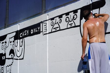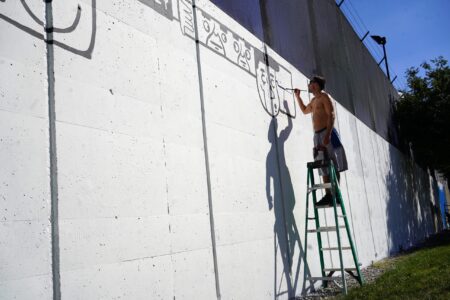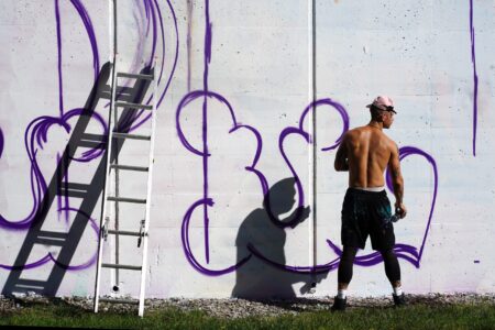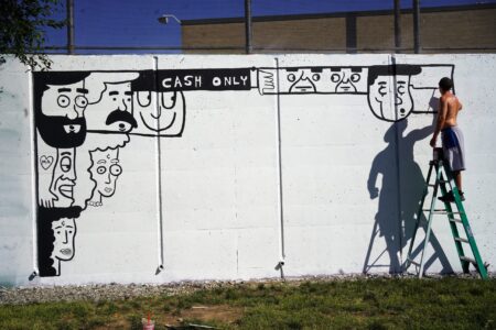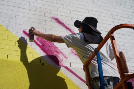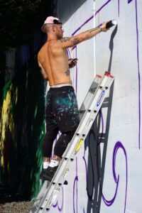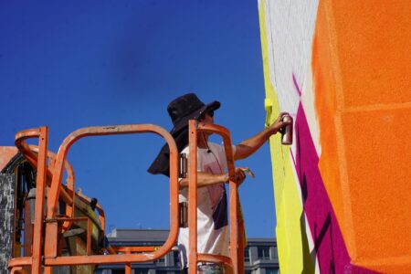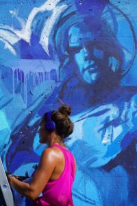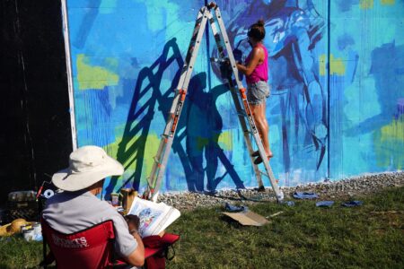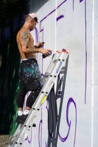 We captured five of these artists working on and nearby the trail and spoke with three of them about their vision for their murals, surviving the heat and the festival experience so far.