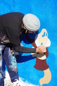 Definitely water. Alcohol is always great. Maker’s Mark is my preference. Alcohol is typically when I’m getting towards the end of the mural. It’s always nice to have that.