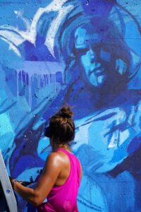 It’s bringing people together. Like Nate [Mann who is also in the festival], for example. My studio is just down the street from the place where he works. But we’ve never connected and now we are painting murals side by side together. Kelly is building an artistic community.