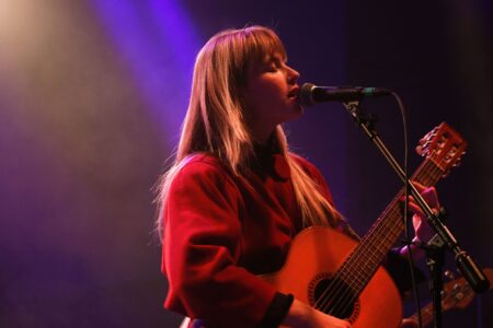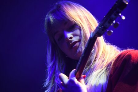 Opening for Tennis on both sold-out nights at the 9:30 Club for the indie pop duo’s “Pollen” Tour, Kate Bollinger brought her sweet folksy charm to the stage. Performing her hit songs like “Yards/Gardens,” “Who Am I But Someone,” and her cover of “J’aime les filles,” Bollinger served as the perfect introduction for Tennis’ equally retro sound. Check out her latest EP here. Photos by Jenna Schwartz.