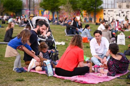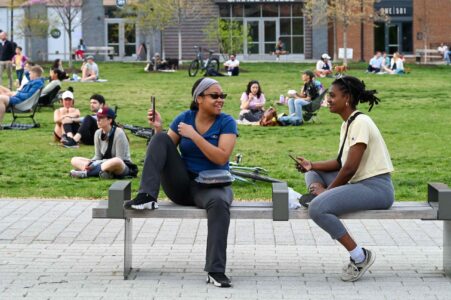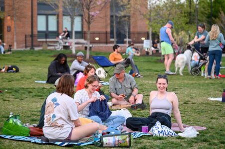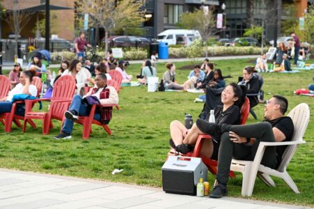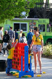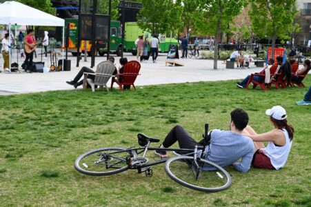 On April 11, friends and families coalesced for the first of seven shows of NoMa Nights, the free outdoor concert series at Alethia Tanner Park. Hosted by DC Fray and NoMa BID, the series kicked off with local artists David Thong Duo, who played a variety of songs as onlookers found spots on the lawn to enjoy the performance. Cornhole, Jenga and giant Connect 4 were also set up for people to play at their leisure. To see the rest of the lineup and when to catch the next concert, visit the event page here. Photos by Ben Droz.