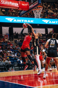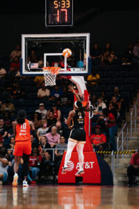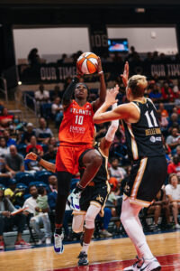 The Washington Mystics fell 80-75 against the Atlanta Dream Friday night in D.C. Guard Brittney Sykes scored 27 points and Elena Delle Donne scored 13 points. The Mystics struggled on offense and rebounding throughout the game but made several comebacks leading to a close game in the 4th quarter. The Mystics are now in 7th for the playoffs which will begin this week. Photos by Krystina Gabrielle Photography.