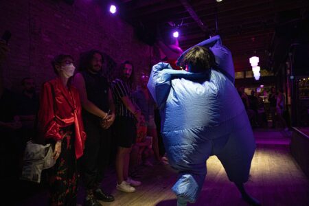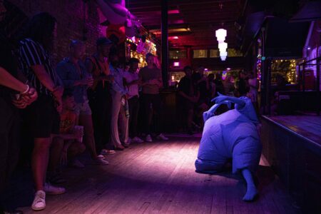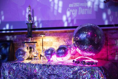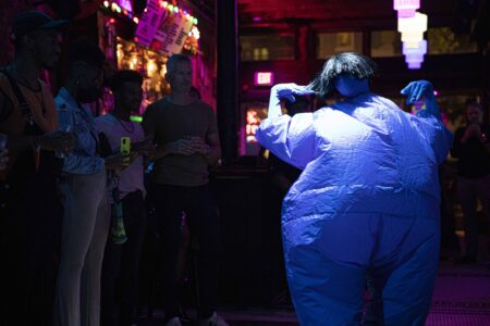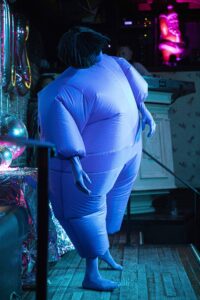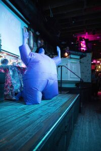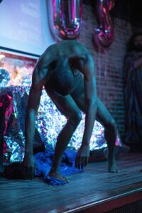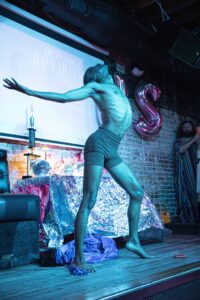 During the ceremony, haus of bambi’s Director Robert Woofter presented Molasses the award following their performance and also brought the HAUS AWARD’s first winner Greg David on stage. Since David did not have a reception last year due to the pandemic, they also performed a riveting routine while wearing an inflated blue costume, which they eventually emerged from.