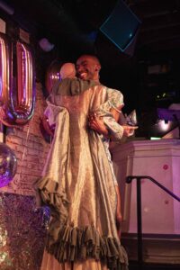 Molasses originally got their start at D.C.’s Pretty Boi Drag in 2018 when they were casting new drag kings. From there, Molasses swept through the District’s queer nightlife as a principal performer at 9:30 club’s BENT night and a cast member JR’s BANSHEES. With their suave dance skills and commanding stage presence, Molasses is now gaining wider attention. They’ve performed twice at the Berlin Nightclub’s Saturday Night Drag Show in Chicago and have been in shows with national performers from “Dragula” and “RuPaul’s Drag Race.” Locals can catch them now performing at As You Are’s monthly Half & Half which they also co-produce. At the awards, Molasses performed a gender-bending performance centered on Western motifs and donned a cowboy hat and petticoat.